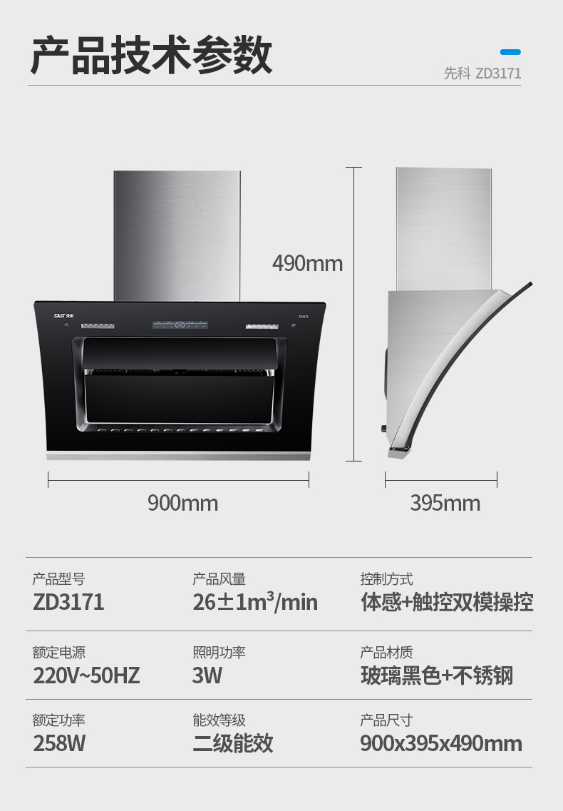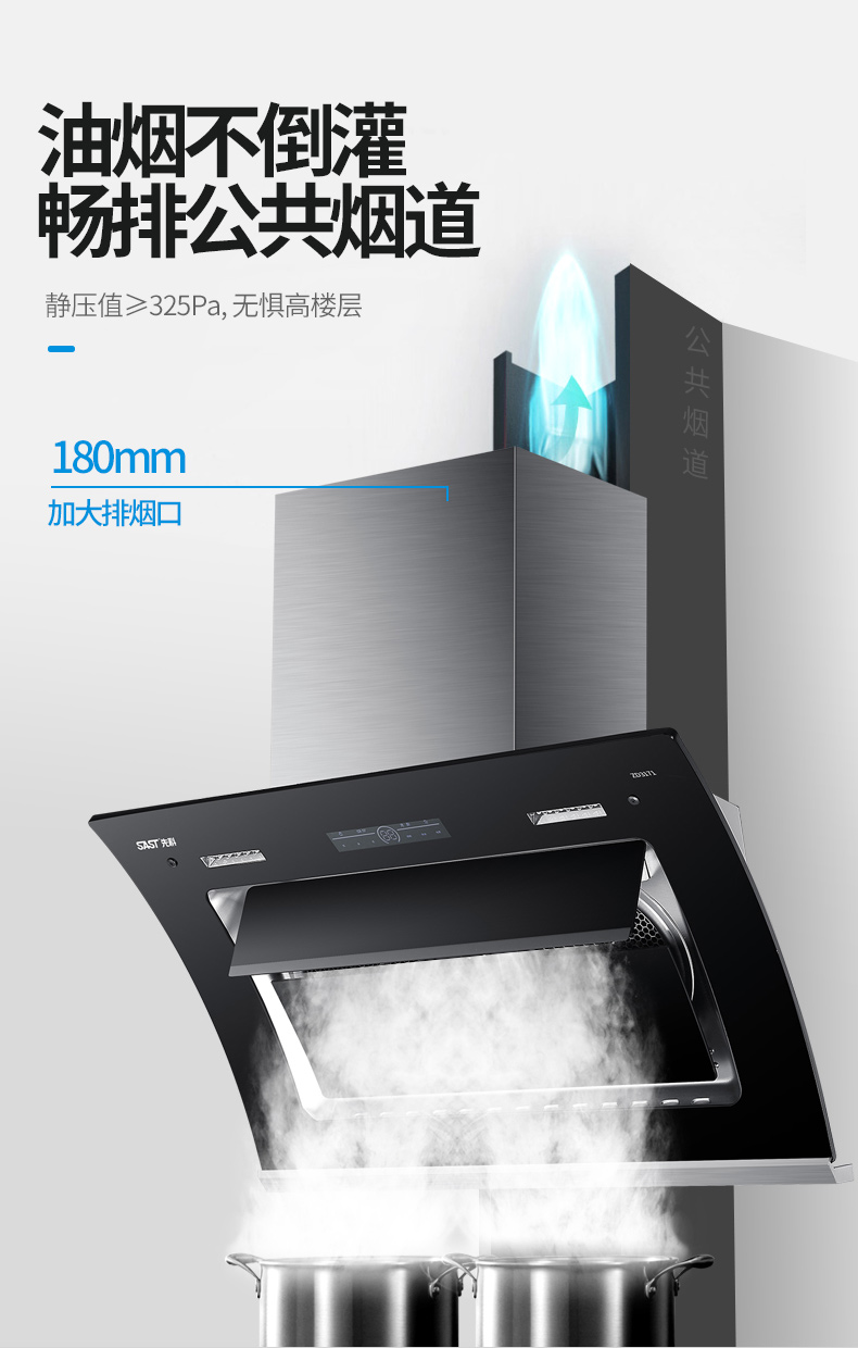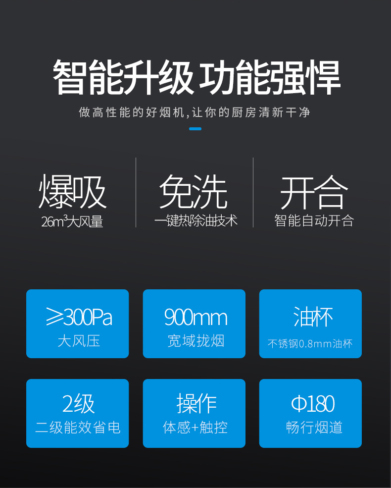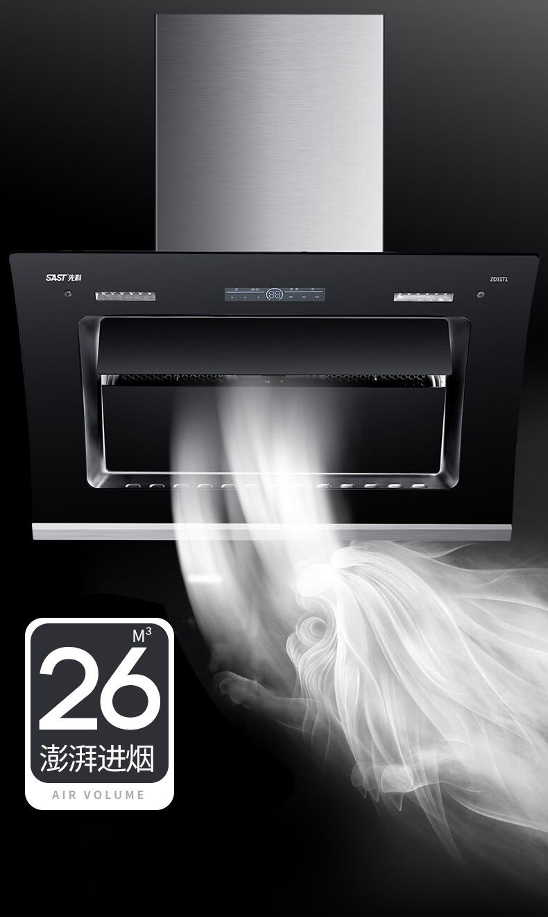 1、26m³超大吸力,油烟快速吸净;