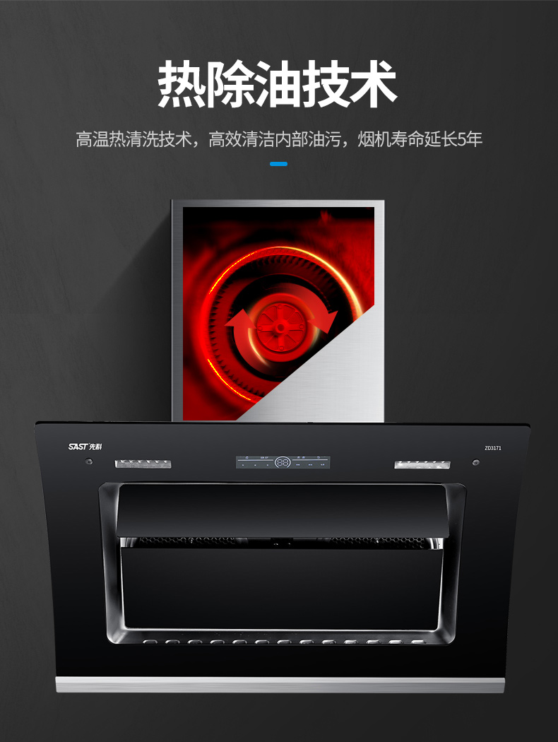 4、一键热除油,烟机免清洗;